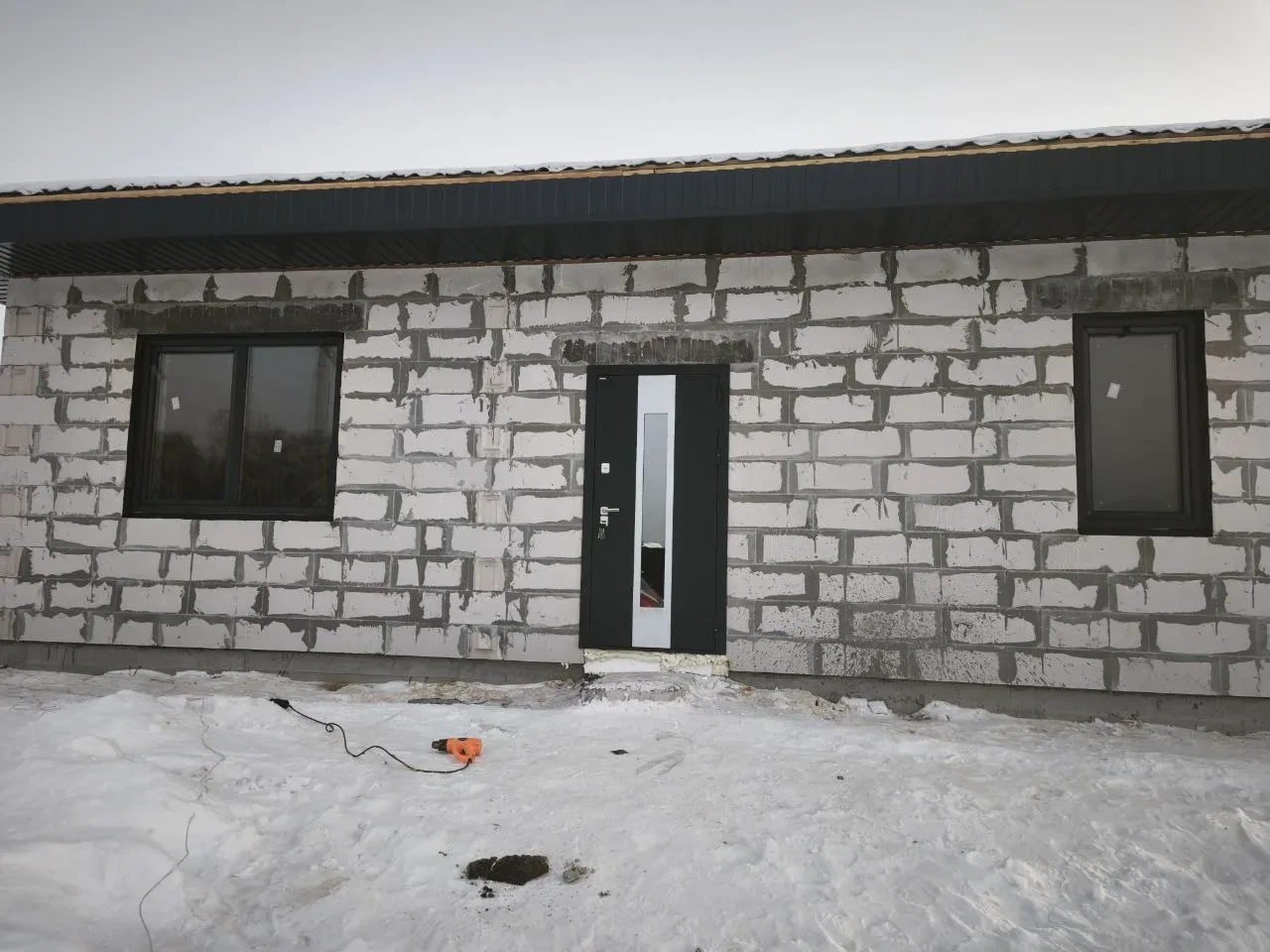 Классический наш объект. Одноэтажный частный дом с красивыми ПВХ окнами в цвете RAL7024. За такими простыми решениями вы можете смело обращаться к нам!
