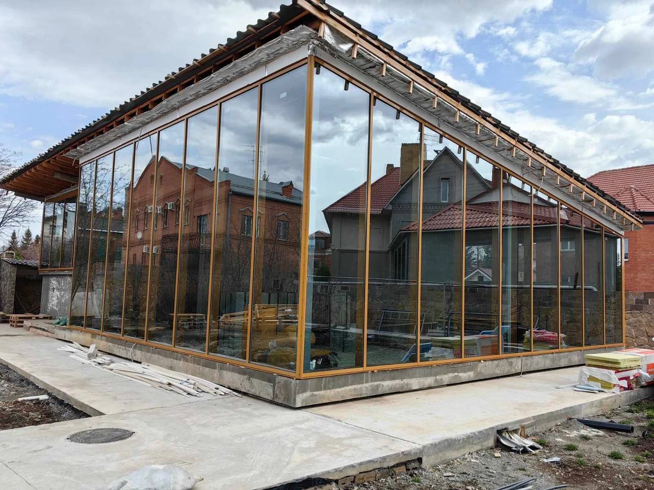 Наша компания произвела впервые остекление фасада коттеджа уникальными стеклами высотой 5 метров. Это стало возможным благодаря открытию новой технологической линии.