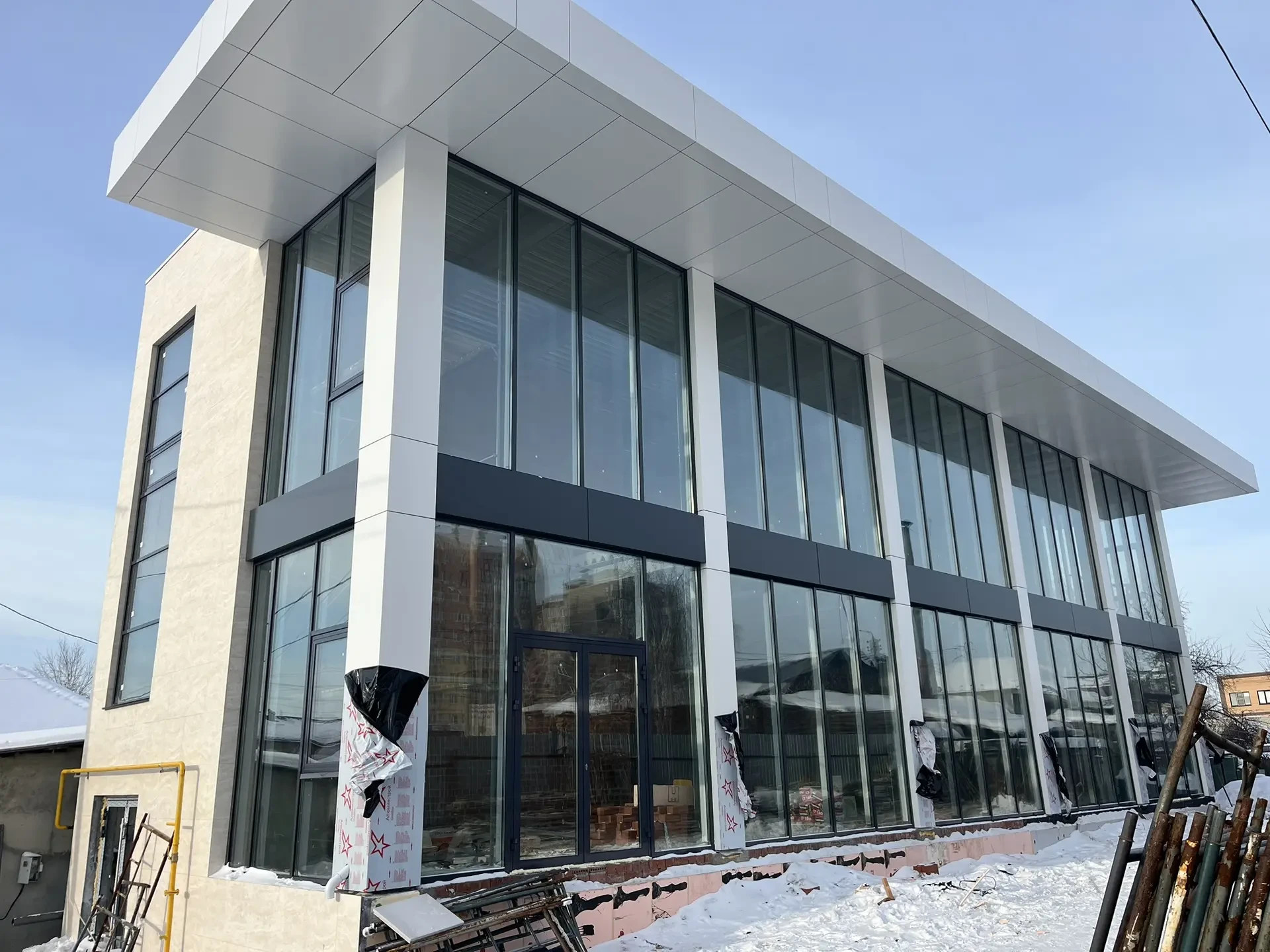 Здания остекляются с помощью тёплого фасадного остекления, используя многокамерный термоизолированный профиль и прозрачные энергосберегающие однокамерные и двухкамерные стеклопакеты.