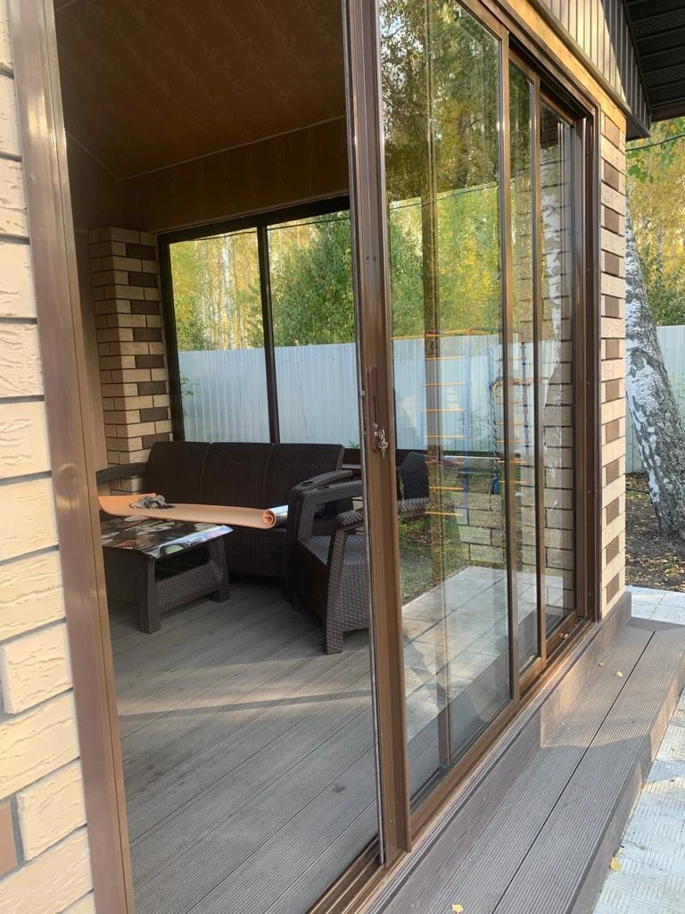 Не занимают пространство помещения и высвобождают большой проем, объединяя между собой две комнаты или комнату с террасой. В закрытом положении обеспечивают непрерывность обзора благодаря меньшему количеству створок.